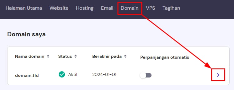 Di menu sebelah kiri, pilih DNS/Nameserver: