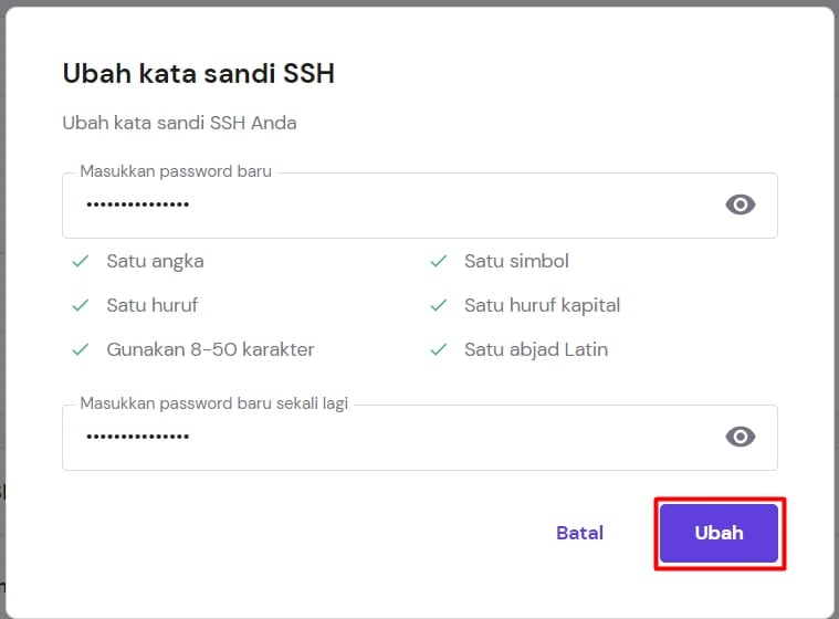Ikuti langkah-langkah berikut jika Anda hanya ingin mengubah password SSH: