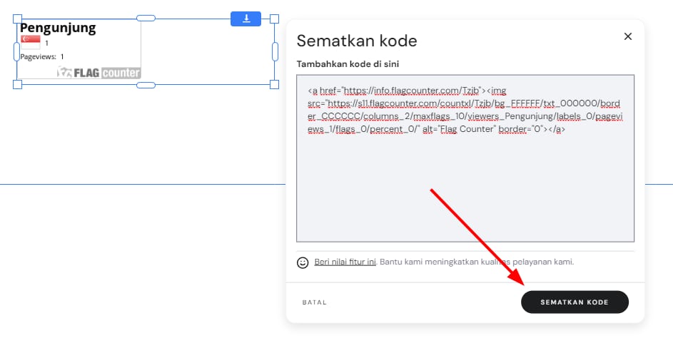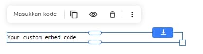 Menggunakan elemen sematkan kode, Anda dapat memasukkan kode kustom ke bagian <body></body> dalam kode website Anda. Pelajari bagaimana cara memasukkan kode ke bagian <head></head> dalam website Anda 💡