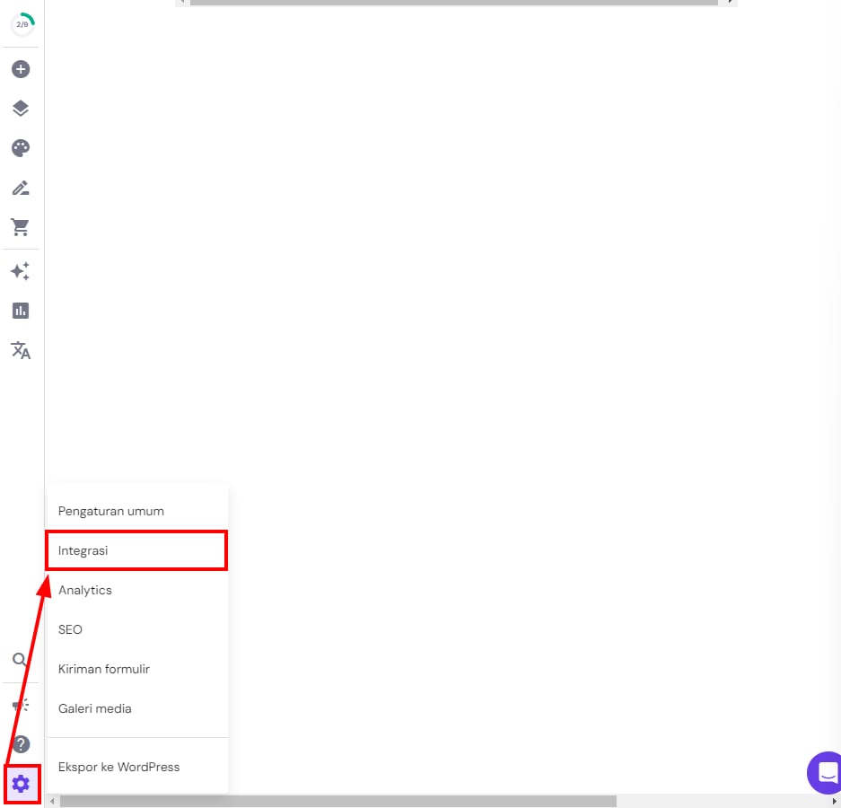 Pada Hostinger Website Builder, semua integrasi bawaan dapat ditemukan pada bagian Integrasi di pengaturan website Anda: