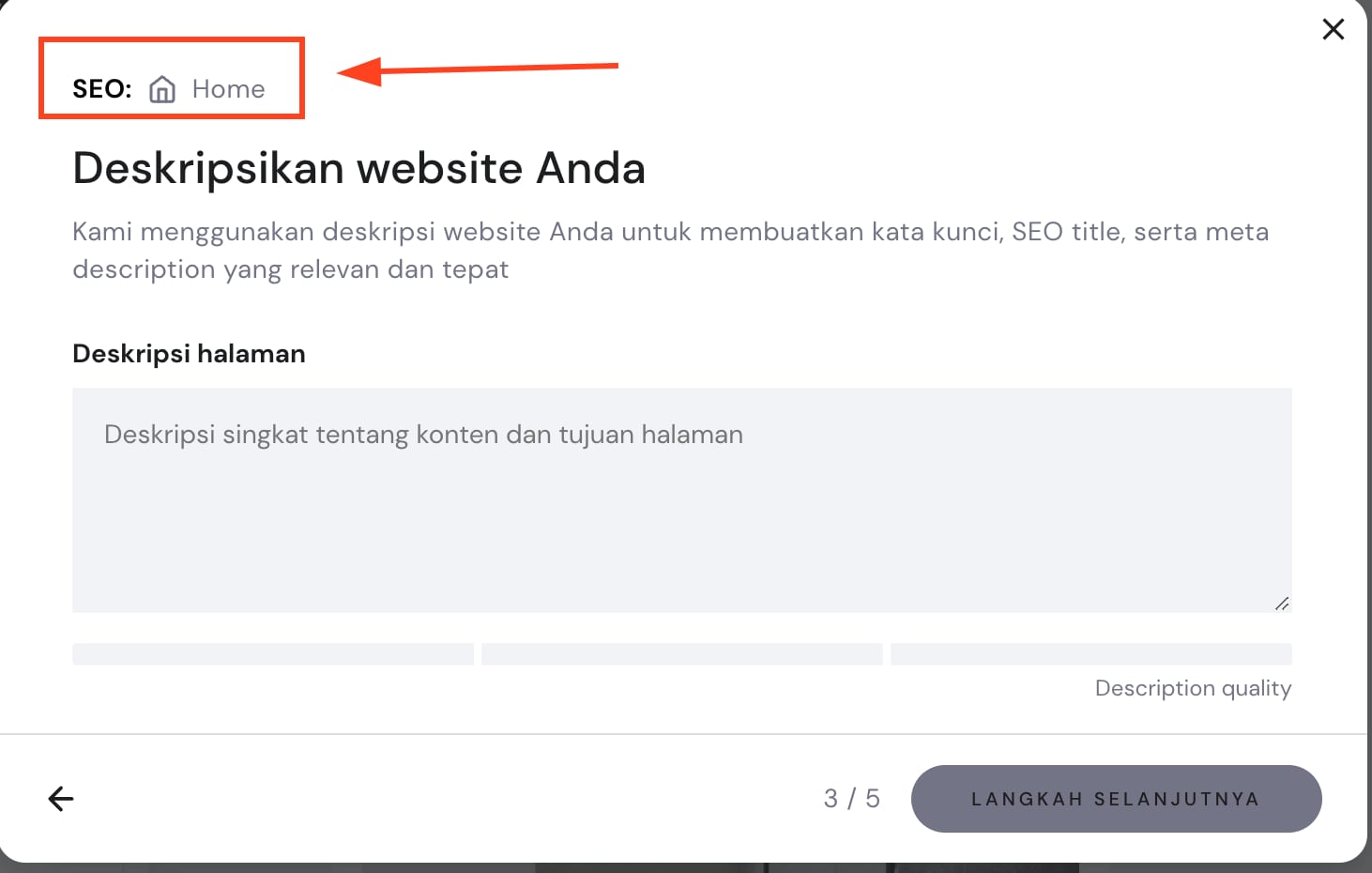 memasukkan nama brand dan bisnis: bagian ini akan muncul apabila meta title website belum dibuat