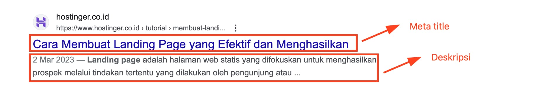 Meta title dan meta description halaman website akan muncul di hasil pencarian sebagai berikut: