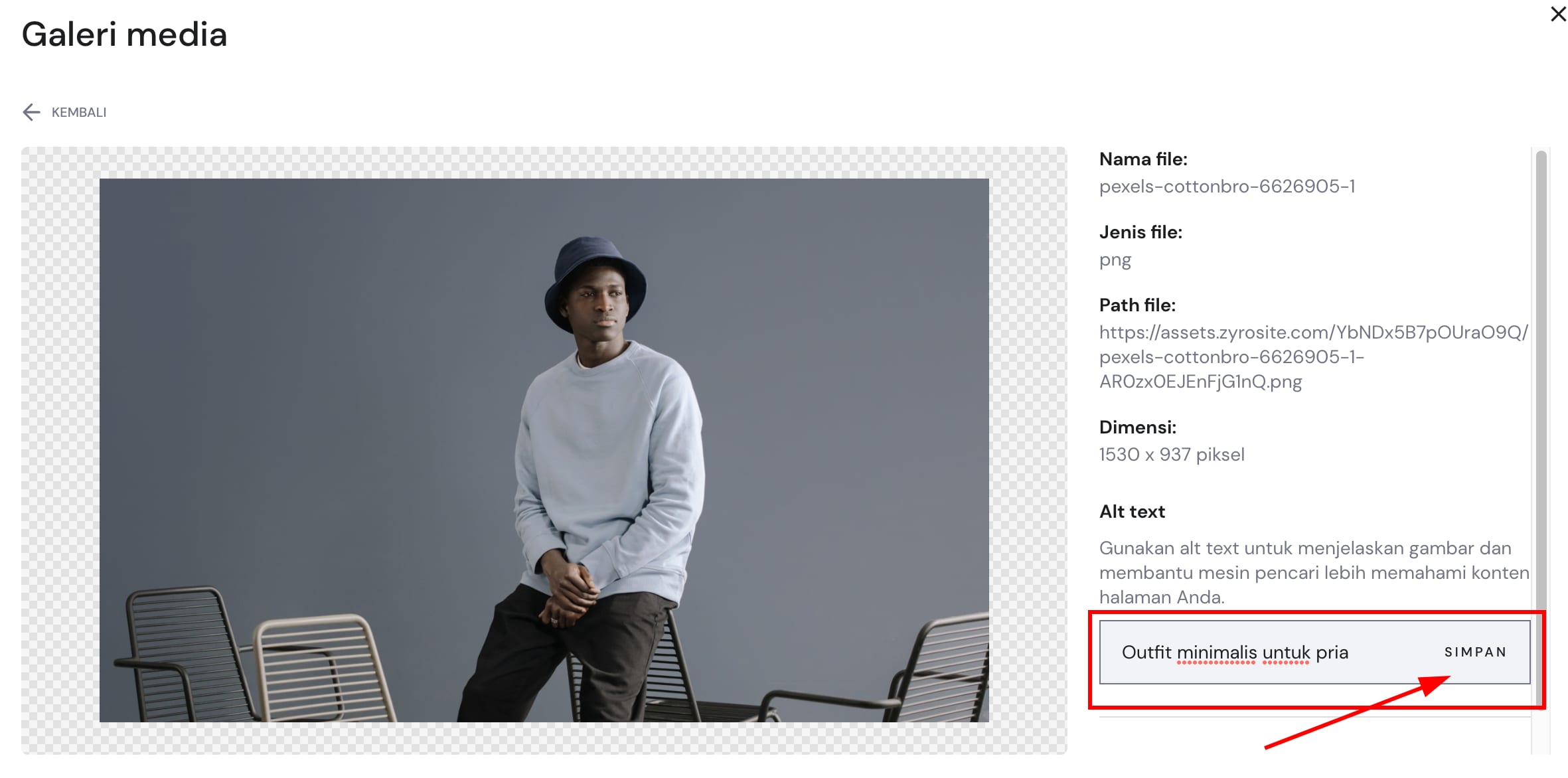 CATATAN: Jika Anda memiliki toko online, judul produk akan digunakan sebagai text alt di gambar utama secara default.