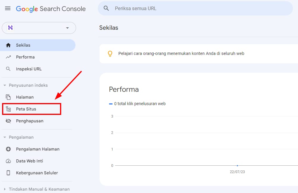 2. Pada akun GSC Anda, buka tab Peta Situs di sebelah kiri: