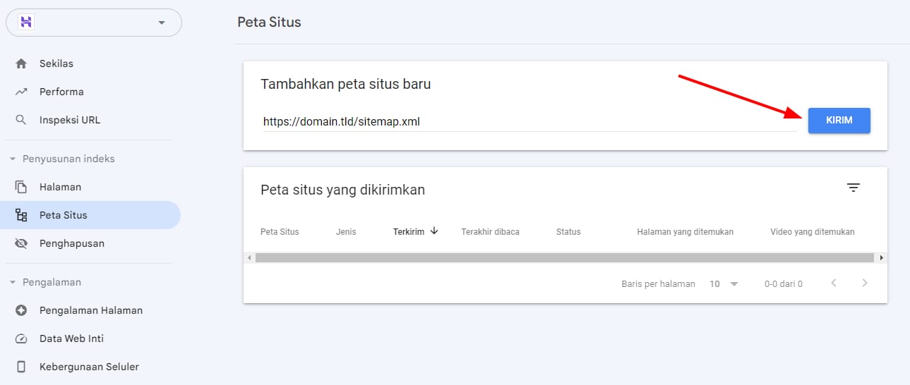 3. Masukkan URL sitemap Anda dan klik Kirim: