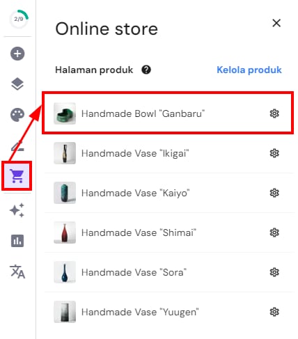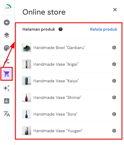 Untuk menemukan semua halaman produk Anda, buka Website Builder dan klik panel Online store di sebelah kiri: