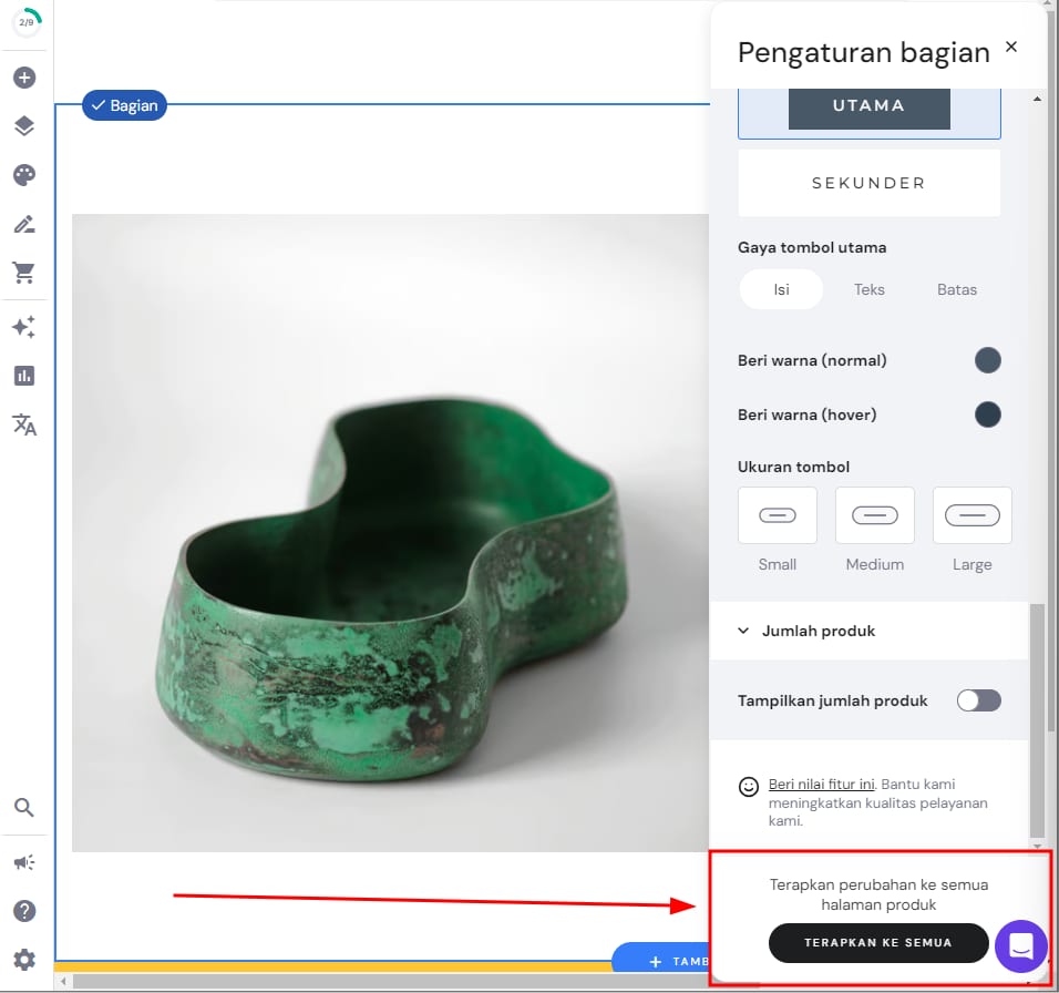 Begitu Anda membuat perubahan, Anda bisa menerapkan perubahan yang serupa pada semua halaman produk; klik tombol Terapkan ke Semua: