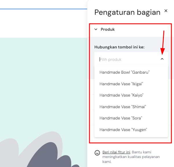 Lalu pilih produk tertentu untuk ditampilkan pada bagian tersebut: