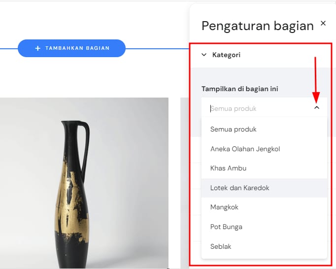 Pelajari lebih jauh tentang pengaturan bagian daftar produk: