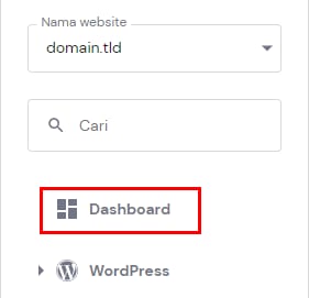 Klik panah di sebelah kiri untuk melihat opsi di setiap kategori. Anda juga bisa menggunakan pencarian untuk menemukan opsi dengan cepat. Klik Dashboard untuk kembali ke bagian hosting.