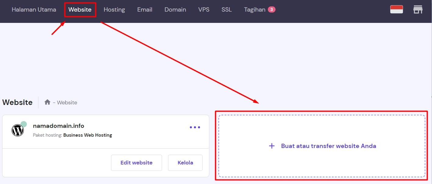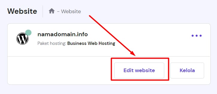Setelah penginstalan selesai, Anda dapat mengelola WordPress dengan membuka bagian Website di panel dan klik Edit website: