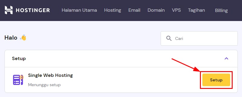 Klik tombol Setup pada paket hosting yang ingin diaktifkan, dan ikuti semua langkahnya sampai proses setup selesai.