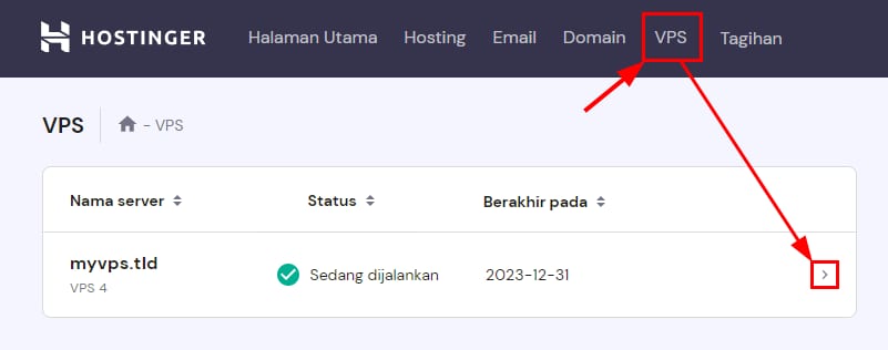 Caranya, buka dashboard VPS di hPanel dan pilih server yang diinginkan:
