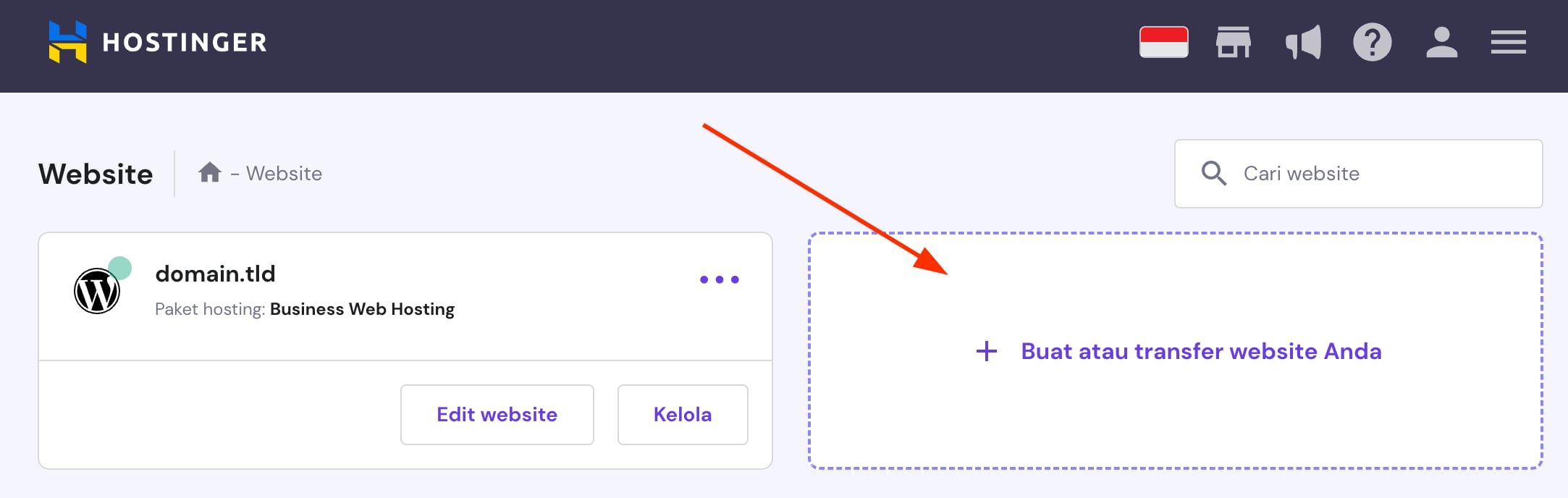 Prosedur ini tidak berlaku untuk website yang dibuat dengan Website Builder Hostinger