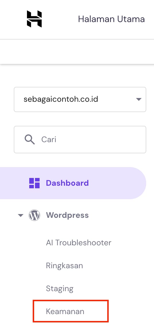 Di menu Website, klik website WordPress, lalu klik Kelola → WordPress → Keamanan: