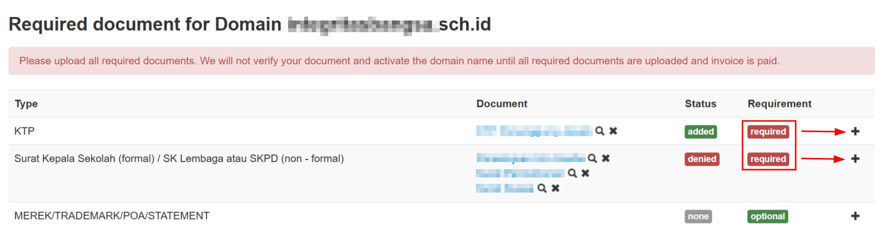 Panduan untuk upload persyaratan domain Indonesia