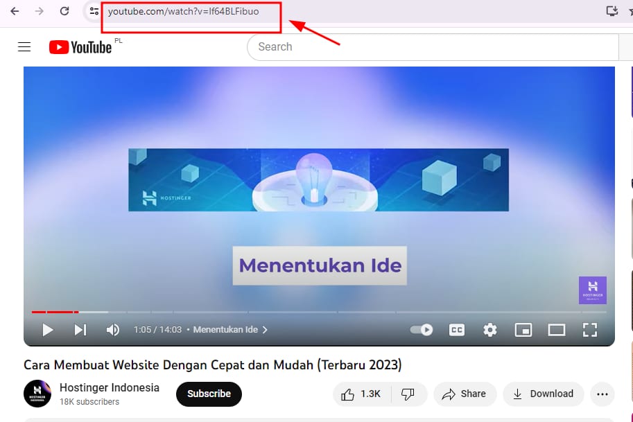 1. Buka video YouTube yang ingin Anda sematkan di website WordPress. Kemudian salin URL video yang terdapat di address bar browser.