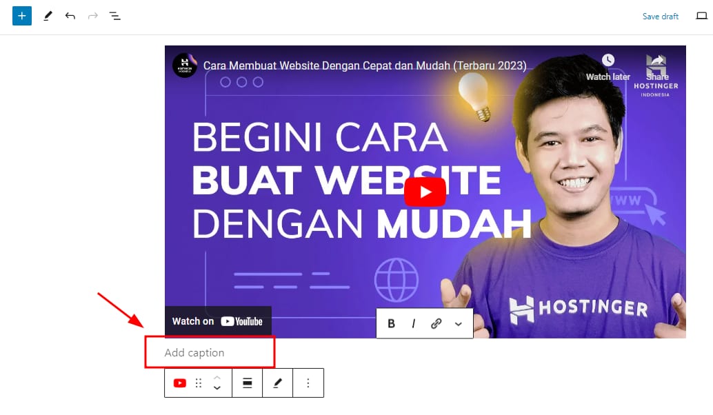 6. Thumbnail dari video YouTube akan muncul. Anda turut dapat menuliskan Caption tepat di bawah embed video.