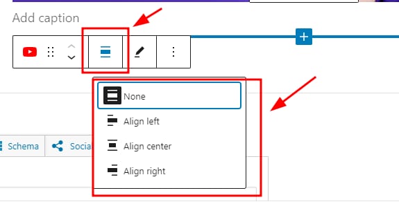 7. Untuk mengatur alignment embed video, klik ikon garis tiga di bilah atas. Anda dapat memilih alignment berikut: