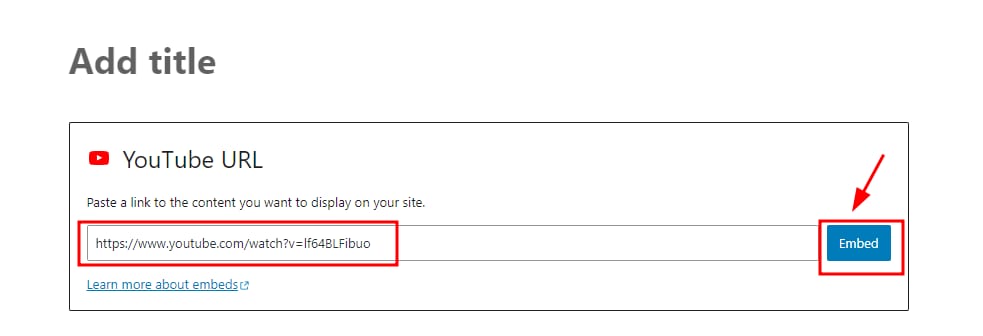 5. Anda akan melihat bilah YouTube URL ditampilkan. Masukkan URL video YouTube pada kolom yang tersedia. Untuk melanjutkan, klik tombol Embed.