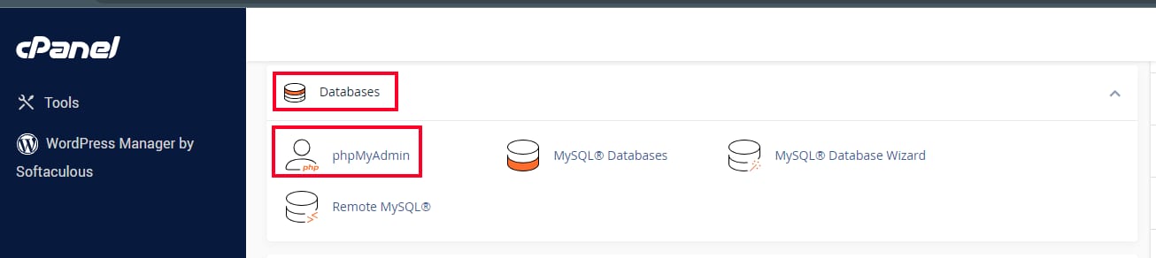 1. Buka kembali halaman cPanel, kemudian klik menu PhpMyAdmin.