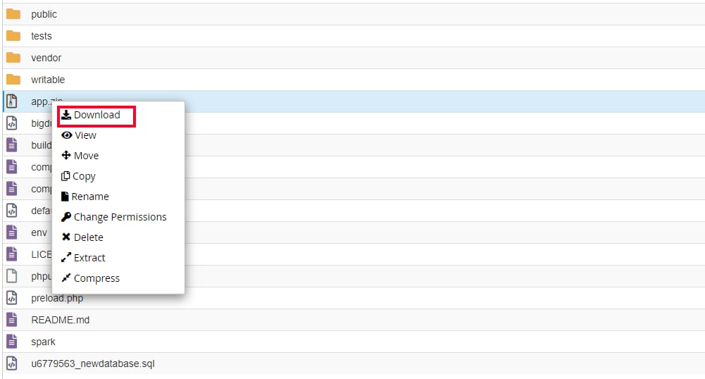 6. Klik kanan pada file berekstensi zip hasil kompres yang telah dilakukan, kemudian pilih Download untuk mengunduh file.