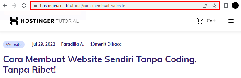 Misalnya, https://blog.hostinger.io/co-id-tutorial mengarahkan pengunjung ke halaman Tutorial. Lalu, https://blog.hostinger.io/co-id-tutorial/cara-membuat-website merupakan URL lengkap artikel Cara Membuat Website di Tutorial Hostinger.