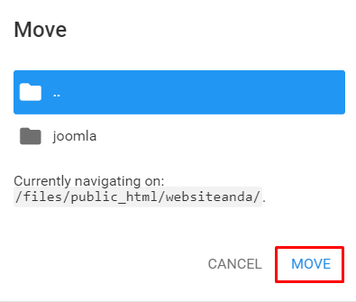 Agar Joomla dapat digunakan via domainanda.com, semua file harus tersimpan di public_html. Apabila, misalnya, Anda tidak mengetikkan titik selagi mengekstrak atau mengupload semua direktori, maka folder tambahan akan dibuat. Buka folder tambahan tersebut dan pindahkan semuanya ke public_html.