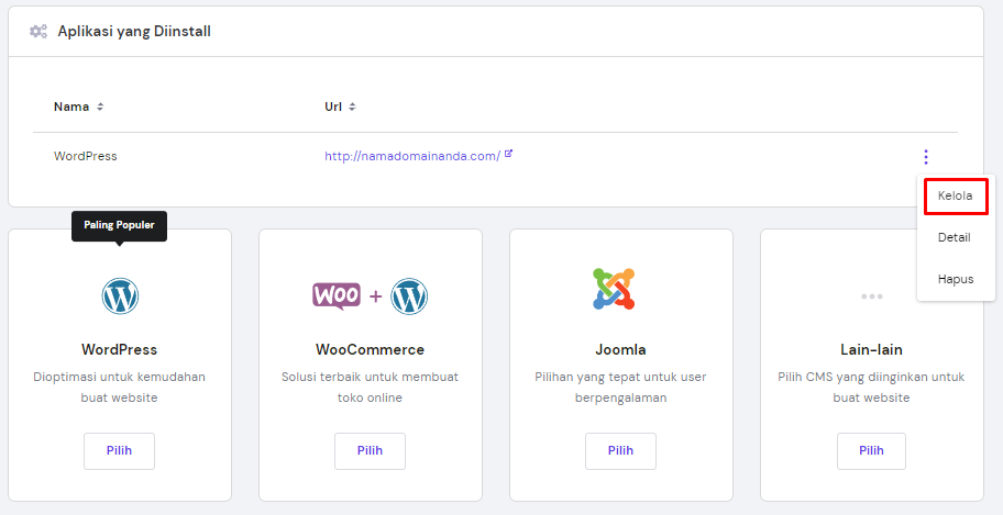Dalam tutorial ini, kami akan menggunakan Instalasi Otomatis Hostinger untuk menginstal WordPress: