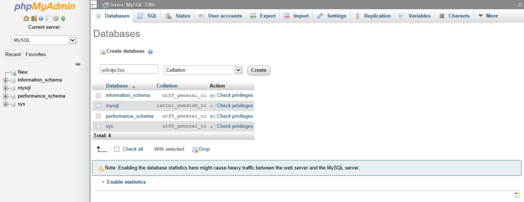 Jika solusi di atas masih belum berhasil, buat database dan pengguna baru di Database MySQL.