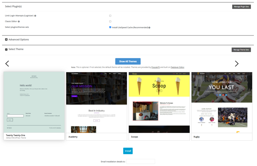 Cara install WordPress lainnya yang bisa Anda lakukan dengan cepat dan mudah adalah dengan menggunakan Softaculous, yaitu installer otomatis populer untuk cPanel, Plesk, DirectAdmin, InterWorx, dan H-Sphere.