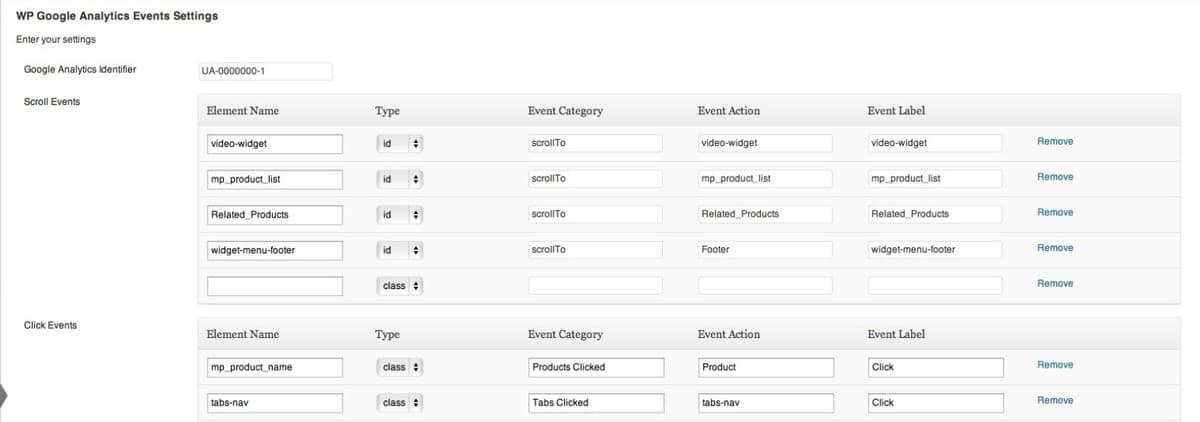 Misalnya, Anda mungkin ingin mendapatkan notifikasi hanya saat seseorang mengklik tombol atau menjelajahi halaman Anda sampai ke titik tertentu. Artinya, Anda harus menentukan kategori event dan tindakan event untuk melakukannya, seperti pada gambar di bawah ini: