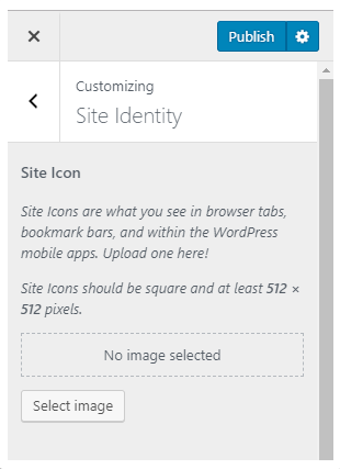 - Klik Select Image yang ada di bawah bagian Site Icon