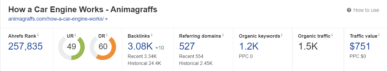 Lihat contoh infografik Cara Kerja Mesin Mobil ini yang mampu mengubah informasi rumit dari dunia otomotif menjadi konten yang mudah dipahami orang awam. Konten tersebut saat ini punya lebih dari 3.000 backlink dari 527 domain rujukan.