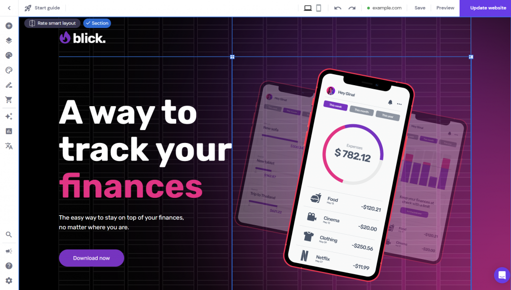 Melalui area editor di website builder kami, Anda bisa menyesuaikan tampilan visual website sesuai keinginan. Untuk memindahkan elemen, cukup seret elemen ke dalam blok yang telah disiapkan.