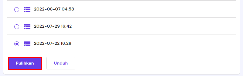 Anda akan melihat daftar tanggal backup yang tersedia. Pilih tanggal yang Anda inginkan, dan klik Pulihkan.