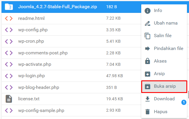 Sebelum lanjut ke proses instalasi, Anda perlu mendownload versi terbaru Joomla di website resminya.
