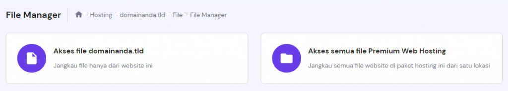 - Setelah database siap, upload file Joomla berformat .zip (yang tadi sudah didownload) ke server Anda menggunakan File Manager di Hostinger. Pilih domain atau akses semua file.