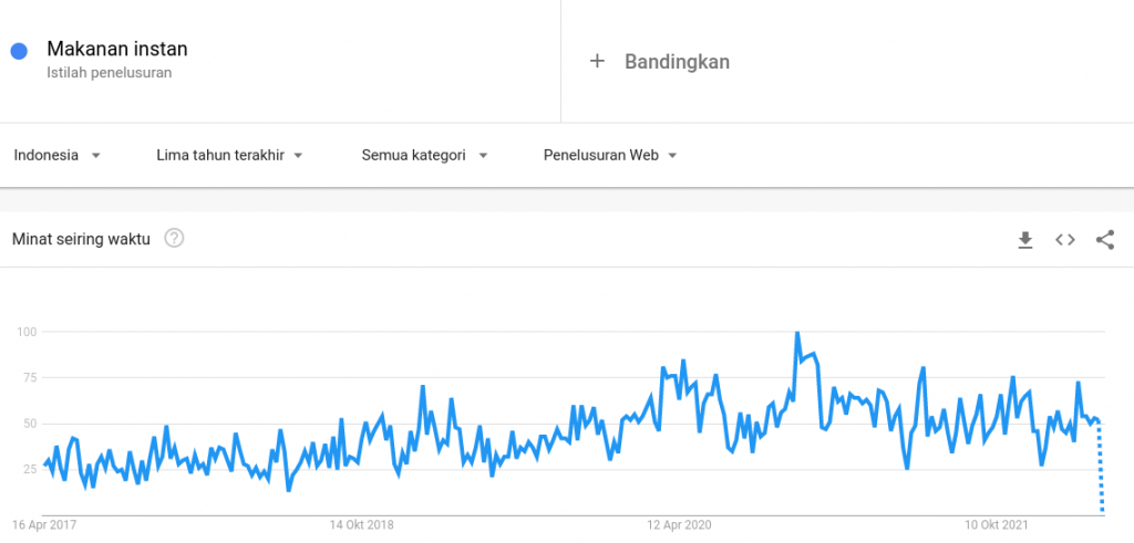 Minat konsumen terhadap makanan dan minuman instan juga hampir tidak pernah turun, seperti yang ditunjukkan oleh data Google Trends ini.