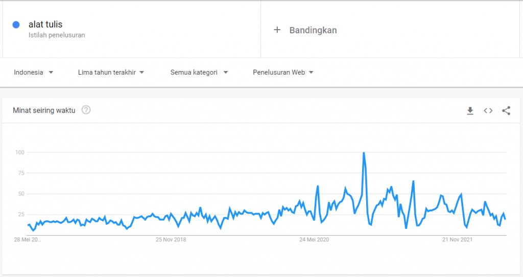 Berdasarkan data dari Google Trends, hasil pencarian online untuk ATK masih tergolong sangat tinggi. Nah, manfaatkan peluang usaha online ini dengan mulai menjual berbagai jenis alat tulis dan kantor.