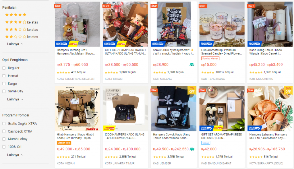 Target pasar produk ini adalah orang-orang yang tidak punya banyak waktu untuk membeli dan membungkus kado sendiri. Kategori hampers yang bisa Anda jual meliputi kado ulang tahun, anniversary, atau bingkisan untuk hari besar.