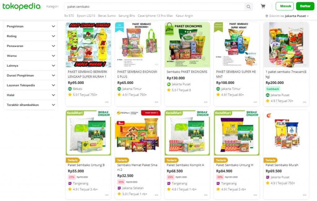 Di marketplace online, ada banyak produk sembako dan kebutuhan pokok dengan harga yang lebih murah daripada di toko fisik.