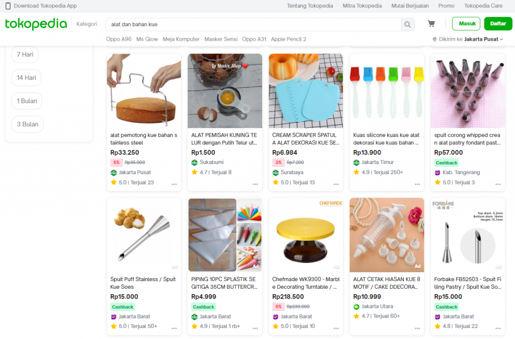 Biasanya, produk-produk untuk membuat kue bisa ditemukan di supermarket terdekat. Namun, tak jarang masyarakat juga mencari di internet agar bisa mendapatkan barang yang lebih spesifik tanpa harus pusing bolak-balik.
