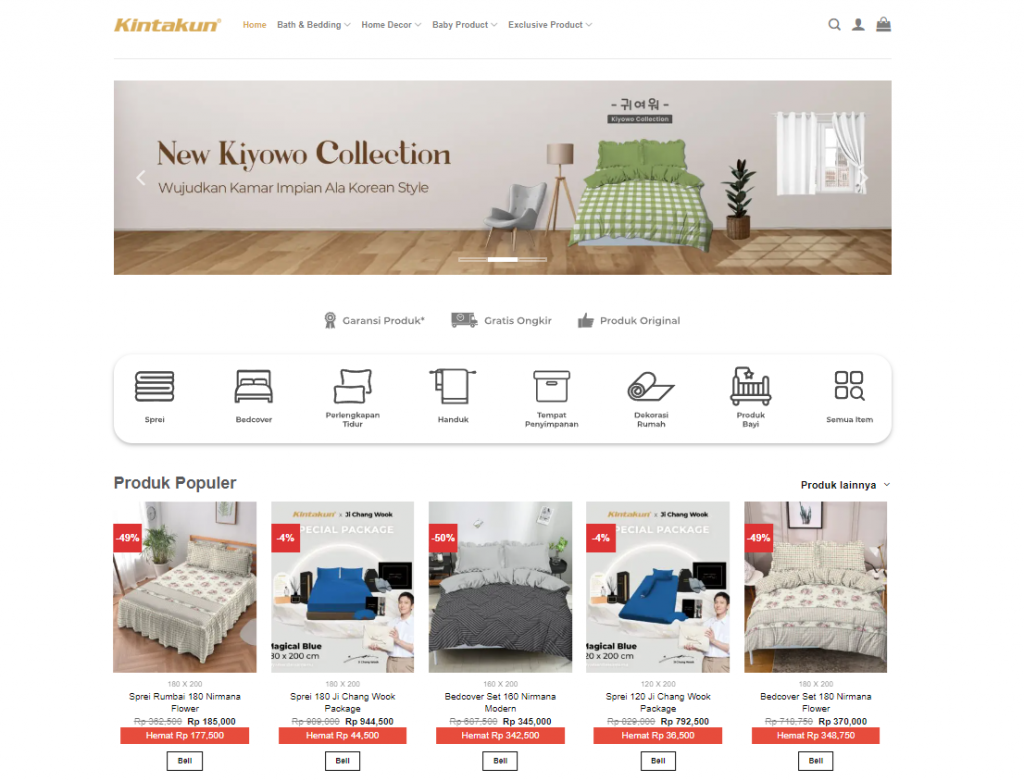 Salah satu brand yang cukup sukses menjual produk ini adalah Kintakun. Selain menjual bed cover, Kintakun juga menjual sarung bantal minimalis dengan bahan yang lembut.