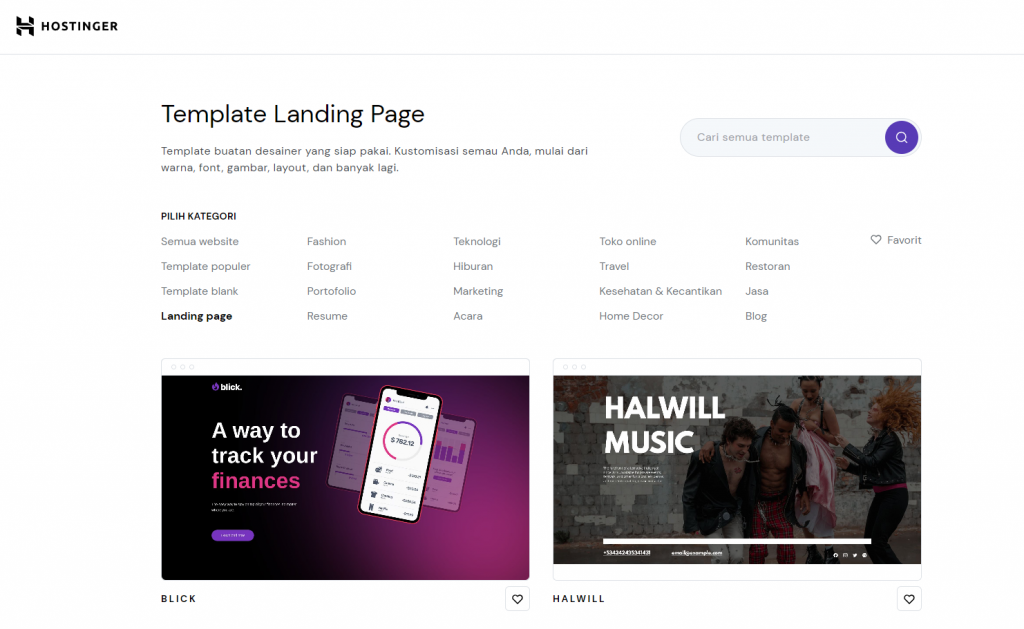 Anda bisa membuat landing page terpisah dengan tool builder dari Hostinger. Selain gratis dan mudah, tool ini juga tool ini juga telah dioptimalkan untuk membuat halaman landing yang ringkas dan memiliki tingkat konversi tinggi.