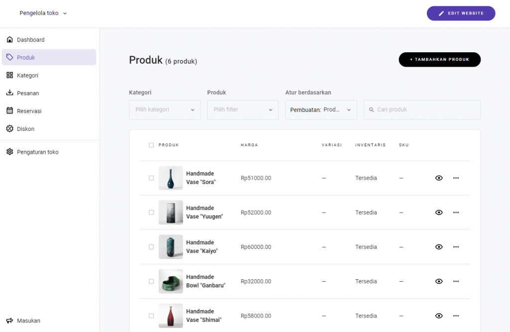 Anda bisa menambahkan hingga 500 produk dan mengaktifkan lebih dari 20 opsi pembayaran sehingga toko online Anda selalu bisa memberikan pengalaman berbelanja yang menyenangkan bagi calon pelanggan.