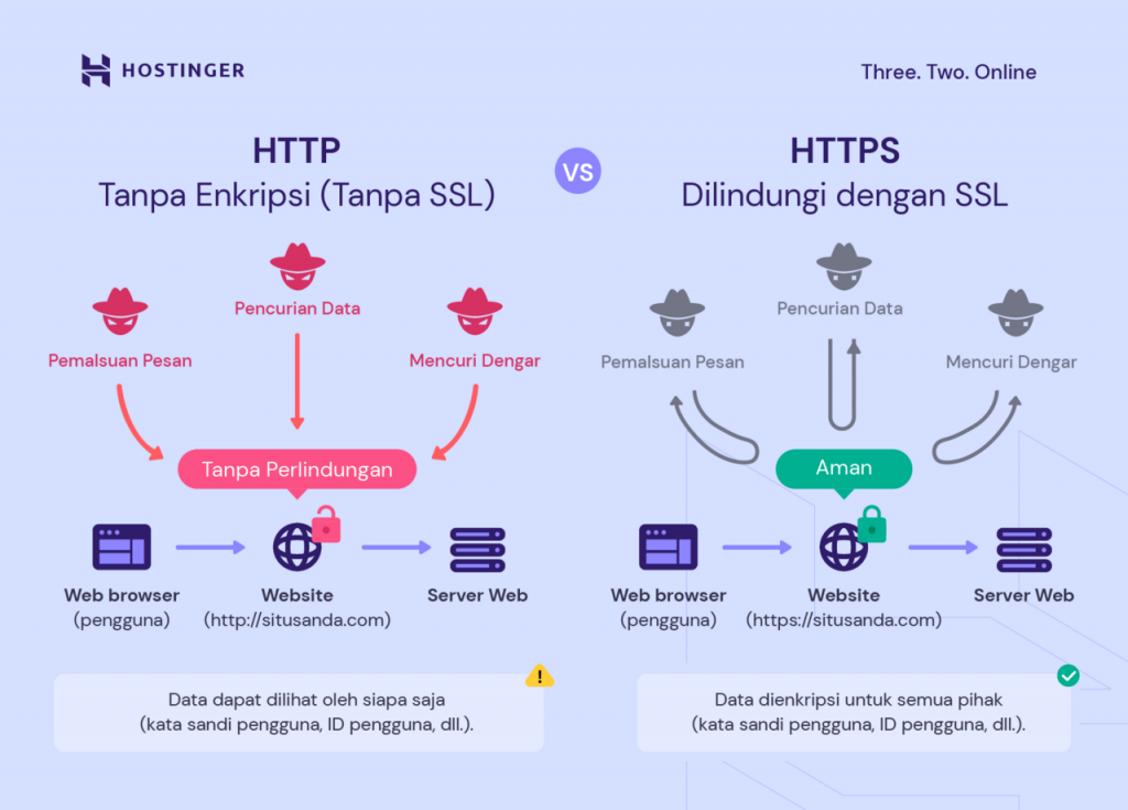 Jadi, salah satu perbedaan HTTP dan HTTPS yang paling utama adalah penggunaan sertifikat SSL.