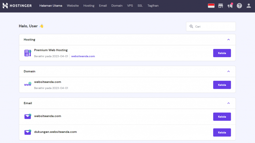 Misalnya, paket WordPress hosting kami dilengkapi dengan plugin dan tool yang sudah terinstal dan disesuaikan untuk website WordPress. Opsi ini paling cocok kalau Anda berencana membuat website menggunakan CMS WordPress.