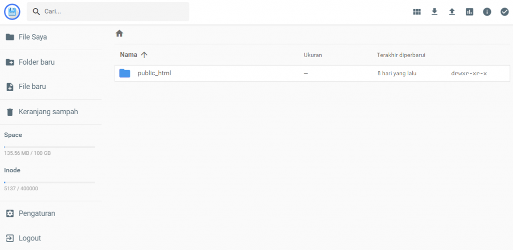 - Tunggu sampai file manager terbuka. Setelah itu, buka folder public_html.