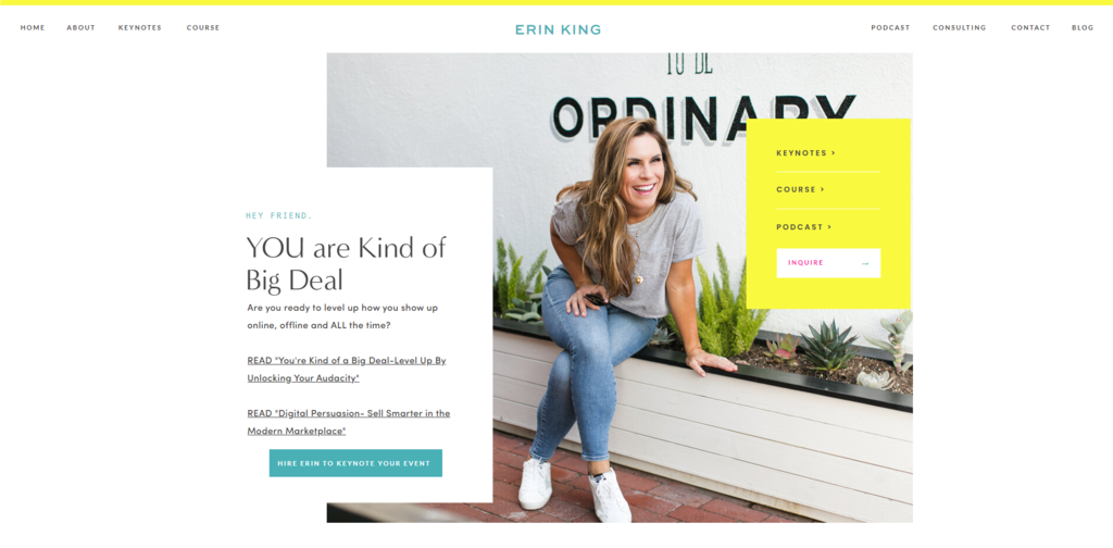 Kemudian coba lihat website portofolio motivator Erin King. Ia menggunakan gabungan teks, gambar, dan video untuk menunjukkan proyek-proyek suksesnya yang telah ia selesaikan.